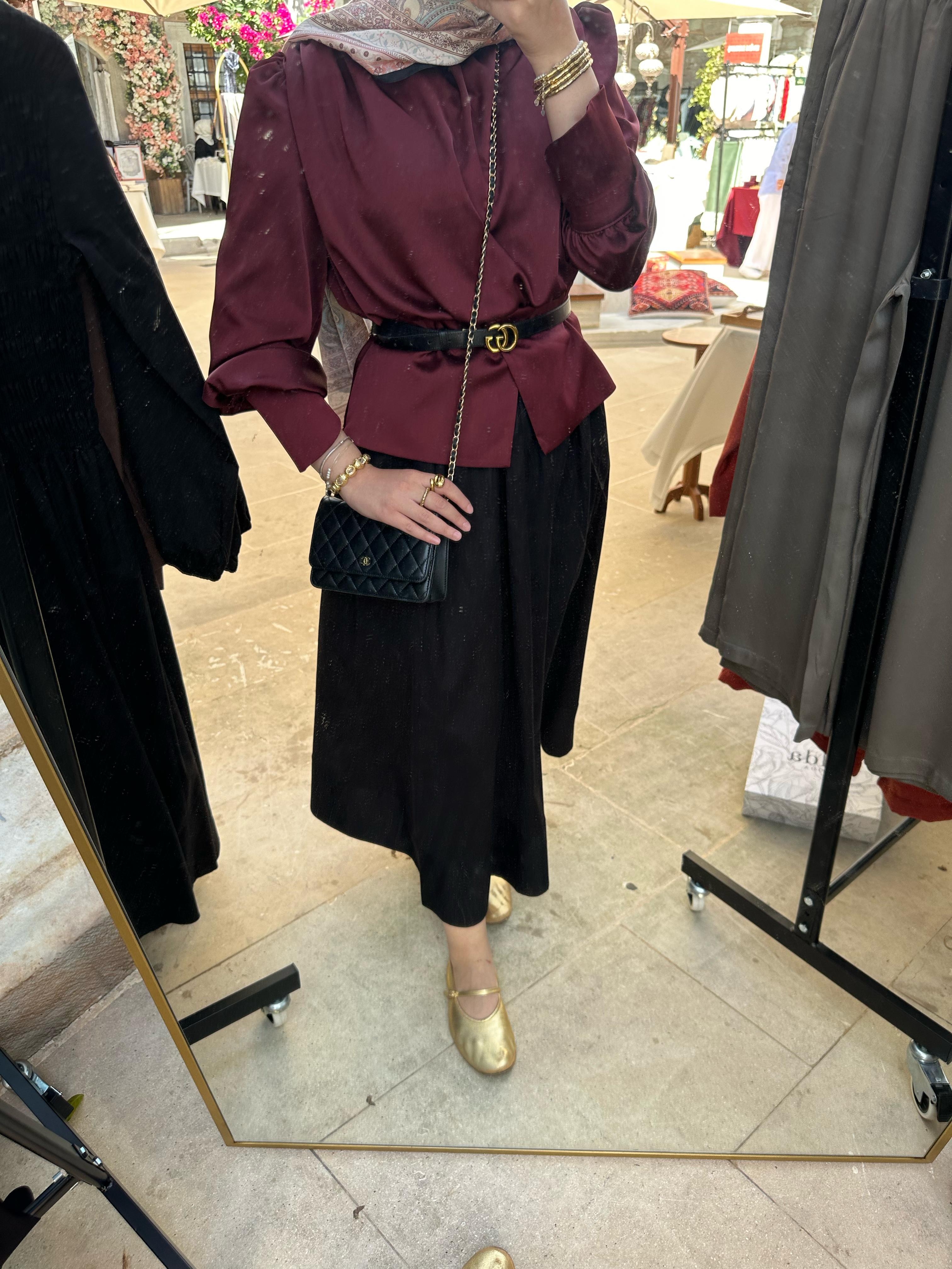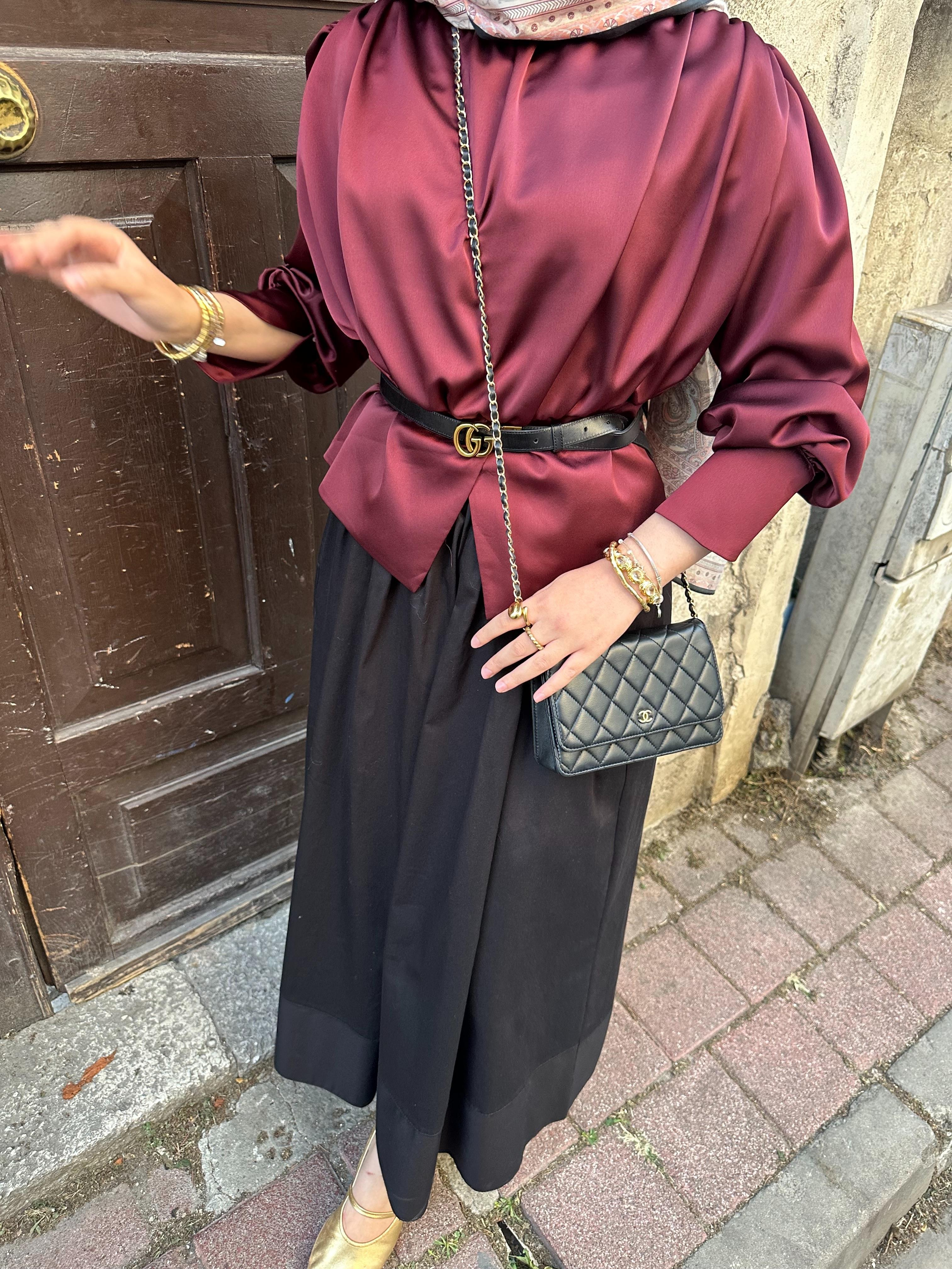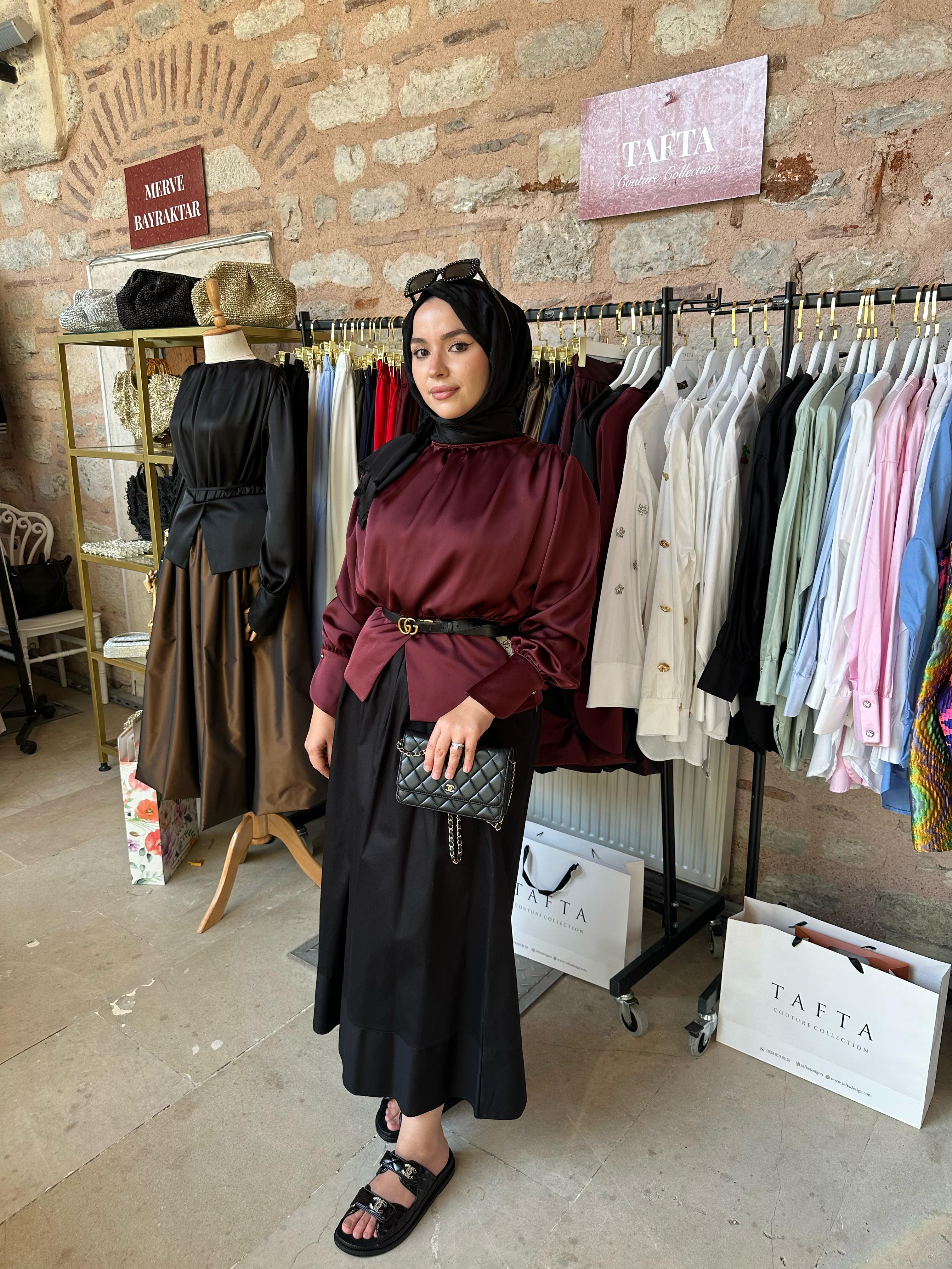 Tafta balon eteklerimizle ve gabardin eteklerimizle kombinleyebilirsiniz.