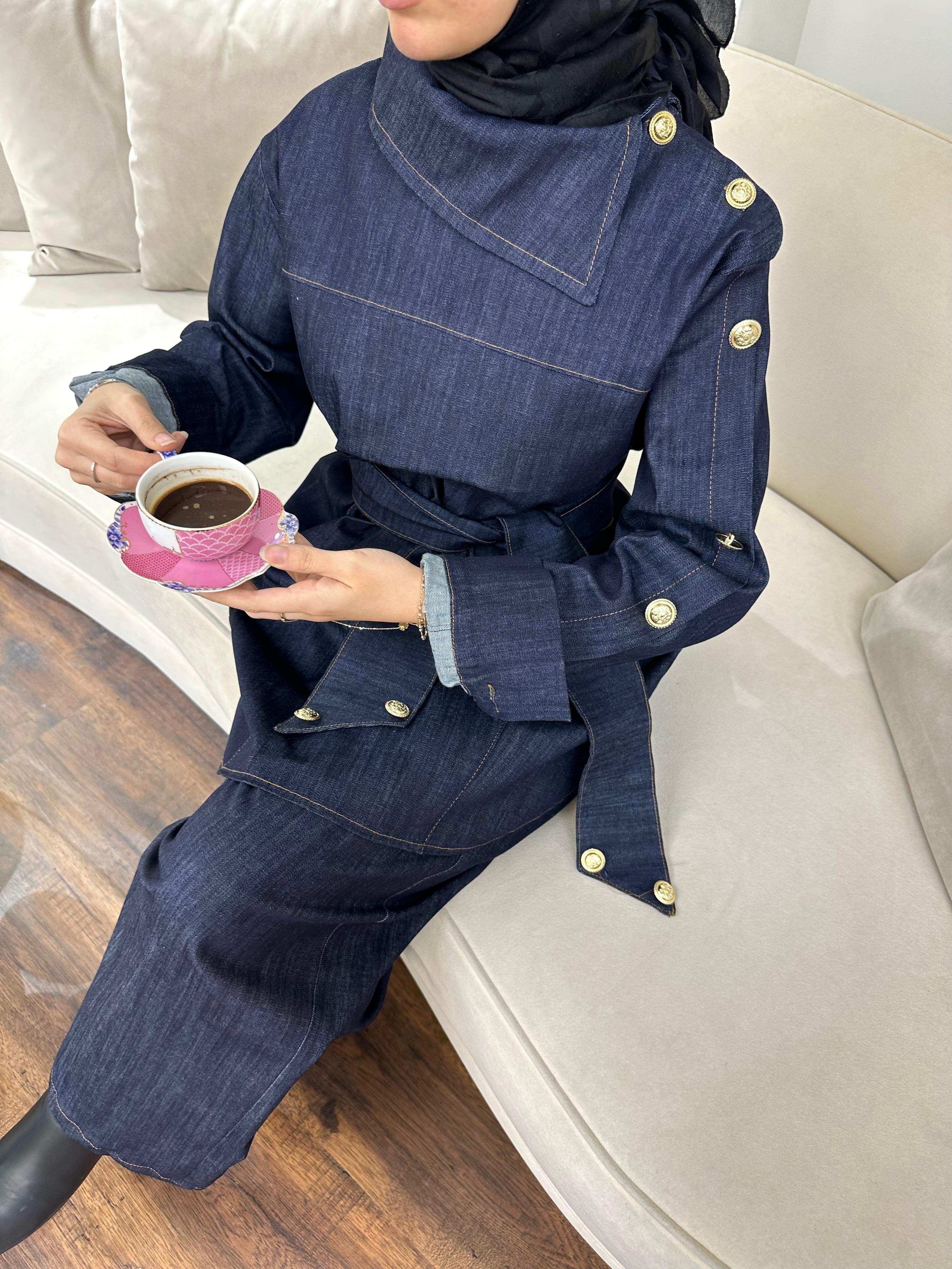 Omuz kol detayında ve kuşağında gold düğmeleri mevcuttur.